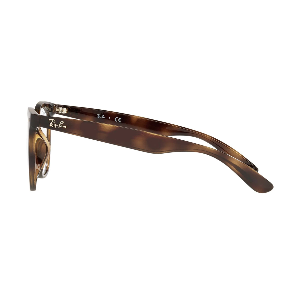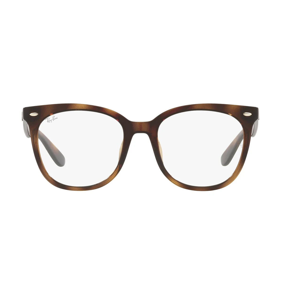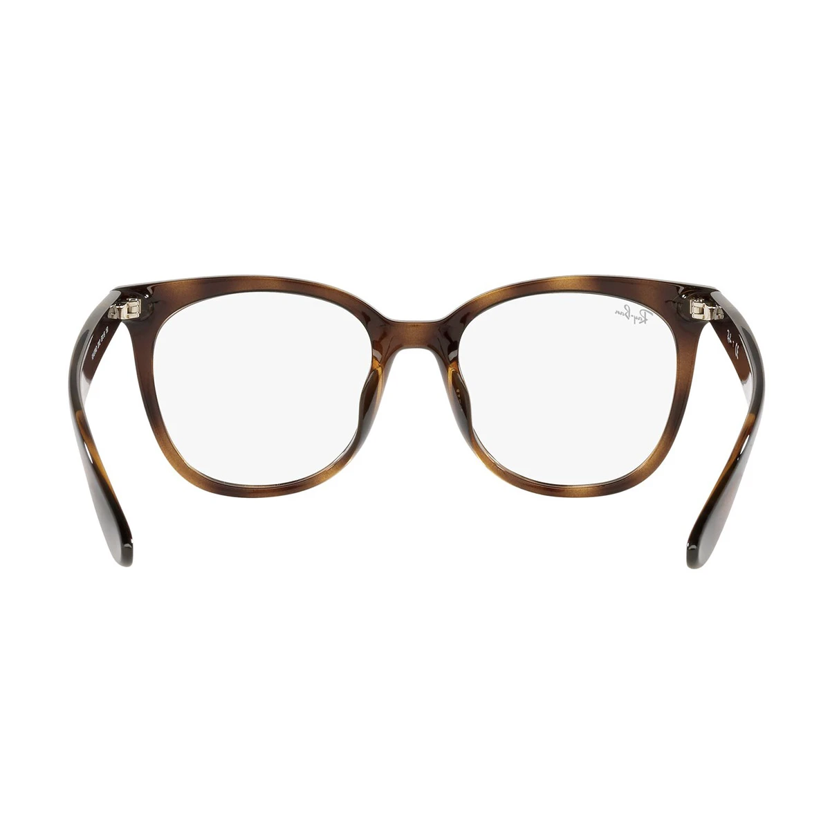 Wyrazisty model od Ray Ban. Duże i głębokie tarcze w kształcie zaokrąglonego kwadratu. Szylkret, czyli melanż przeplatający ciemniejsze i jaśniejsze odcienie brązu – w nomenklaturze Ray Ban, to kolor havana, w tym przypadku lekko transparentny. Srebrne elementy na froncie, przy zawiasach. Całość wykonana z lekkiego tworzywa.